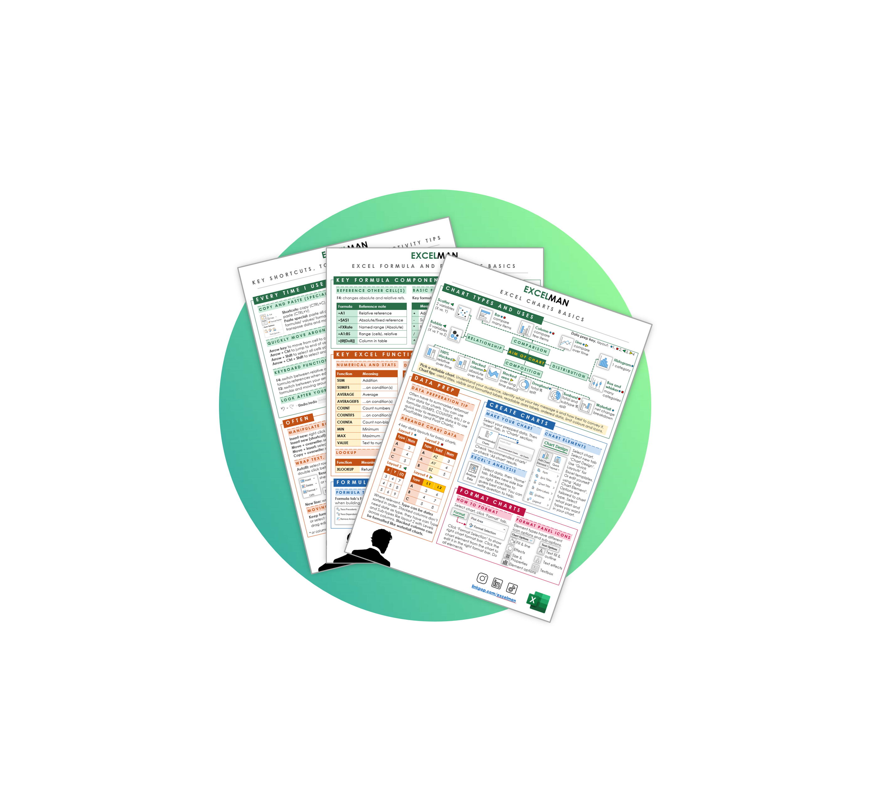 Hey there, Excel enthusiasts! I'm ExcelMan, here to revolutionize your Excel game. With years of experience and a passion for automating Excel, I've compiled these cheat sheets to make your life easier. Let's excel together! Want even more? Please do check out my unique Excel automation course or book a call me and we can talk Excel and get your time back at work and feeling confident.